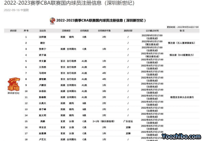 360直播09月17日,CBA更新球员注册信息表,徐杰以B类合同续约广东5年,沈梓捷D类顶薪续约深圳2年,姜伟泽B类续约吉林5年,孙铭徽也已经完成了正式注册,胡明轩、郭艾伦和周琦的续约还没完成,依旧是预注册的状态。