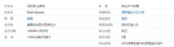 2016年NBA选秀,马利克-比斯利在首轮第19顺位被丹佛掘金队选中。7月13日,掘金队已经与马利克-比斯利签约。