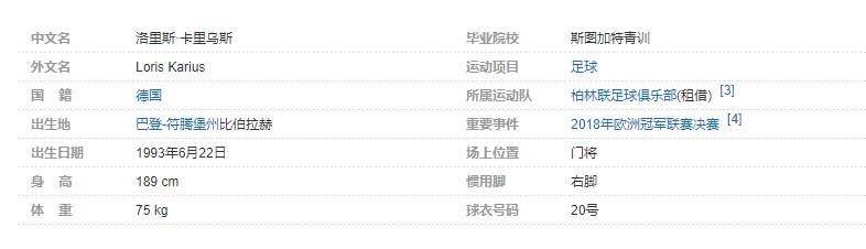 洛里斯·卡里乌斯(Loris Karius),1993年6月22日出生于德国巴登-符腾堡州里斯河畔比伯拉赫,德国足球运动员,场上司职门将,现租借效力于德甲柏林联足球俱乐部。