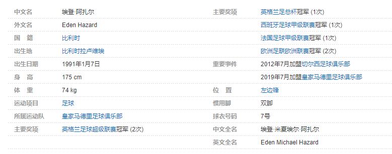 埃登·阿扎尔(Eden Hazard),全名埃登·米夏埃尔·阿扎尔(Eden Michael Hazard),1991年1月7日出生于比利时拉卢维埃,比利时足球运动员,司职左边锋,效力于西班牙足球甲级联赛的皇家马德里足球俱乐部。