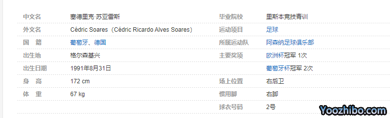 塞德里克·苏亚雷斯(Cédric Soares),全名塞德里克·里卡多·阿尔维斯·苏亚雷斯(Cédric Ricardo Alves Soares),1991年8月31日出生于德国格尔森基兴,拥有葡萄牙和德国双重国籍,葡萄牙职业足球运动员,场上司职右后卫,现效力于英超的阿森纳足球俱乐部。
