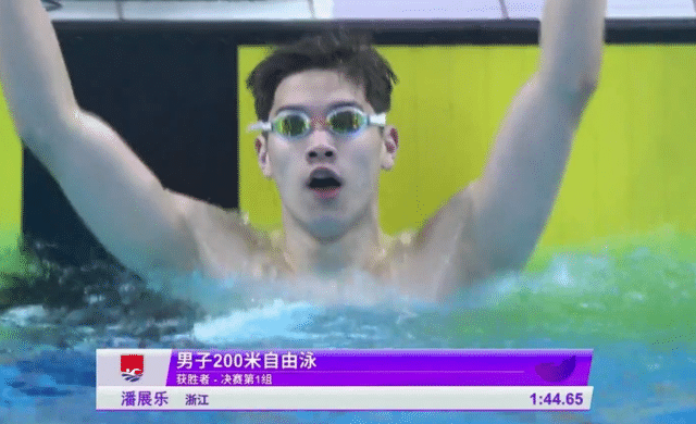 这场男子200米自由泳决赛,对于潘展乐来说并非主项。在孙杨淡出泳坛之后,中国中长距离自由泳项目上,面临后继无人的窘境。但是这场比赛,潘展乐展现了疯狂的能力。前100米,汪顺占据第一,潘展乐紧随其后。但从150米开始,潘展乐开始疯狂加速。最后触壁时,潘展乐的成绩定格在1分44秒65。这是一个不可思议的成绩,孙杨保持的全国和亚洲纪录是1分44秒39。2019年,孙杨世锦赛200米自由泳夺冠,也只是1分44秒93。