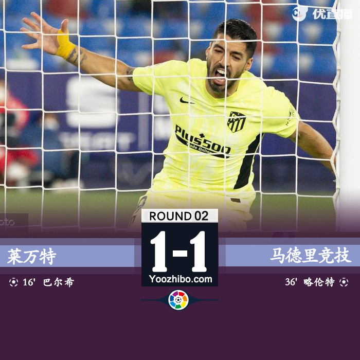 360直播2月18日讯 北京时间2月18日02:00,西甲第2轮进行一场补赛,马德里竞技客场挑战莱万特。上半场,巴尔迪帮助莱万特取得领先,略伦特远射将比分扳平。下半场,科雷亚补射空门不进。最终,马德里竞技1-1客场憾平莱万特,11轮不败,少赛一场6分优势继续领跑积分榜。