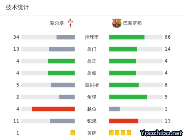 全场比赛结束,巴萨2-1塞尔塔。