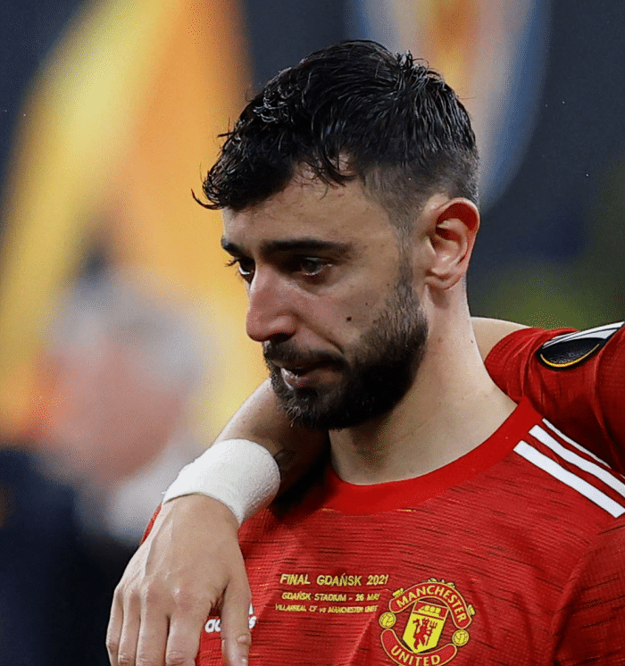 360直播讯 尽管曼联本赛季在英超排名上取得了进步,但索尔斯克亚的球队未能以理想的结局结束赛季,欧联杯决赛不敌比利亚雷亚尔,让赛季以失败告终。英国《曼彻斯特晚报》称,球队核心布鲁诺·费尔南德斯可能决定换个号码,改变运气。