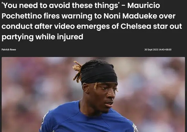 360直播09月30日讯 莫里西奥-波切蒂诺向切尔西边锋诺尼-马杜埃克发出警告,有视频显示他在受伤的情况下仍参加派对。