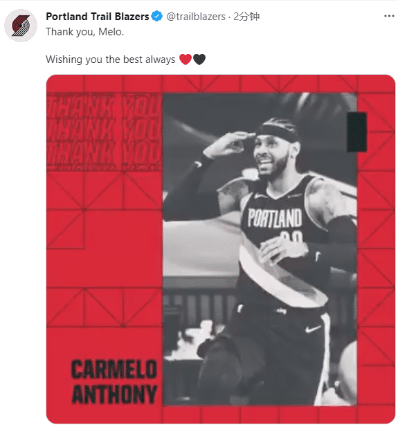 开拓者官推发文:谢谢你,梅隆,祝你永远都是最好的。