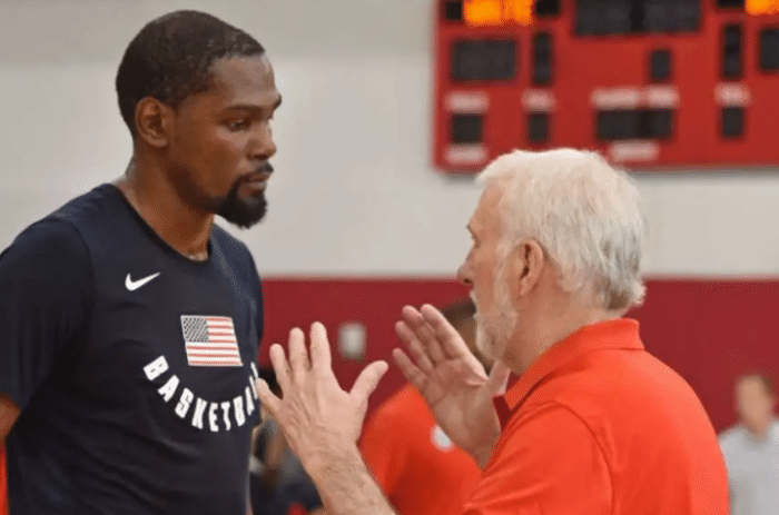 也确实是这样,今年已经72岁的老帅执教美国男篮承担着巨大的压力,因为在19年世界杯仅仅取得了第七名的历史最差战绩,所以这对于球迷们印象中的“美国男篮天下无敌”形成了巨大的反差。所以带着复仇的压力和无数人的目光,波波维奇在带领马刺结束一整个赛季之后,执教美国男篮,冲击奥运会,这次他必须要成功,所以才有了为了带上杜兰特,可以哭着求杜兰特参加奥运会这样的言论。