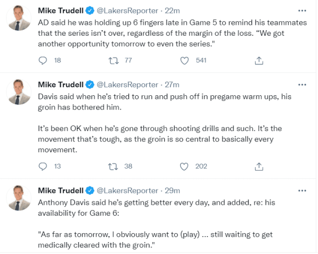 虽然G5输了30分,但浓眉认为这依然只是一场失利而已。在比赛中,浓眉就大声鼓励自己的队友,比赛快结束时,浓眉也曾向队友们伸出6根手指,提醒队友们这轮系列赛还没结束,不管G5输给太阳多少分。“我们明天有机会扳平这轮系列赛,”浓眉在采访中说道。