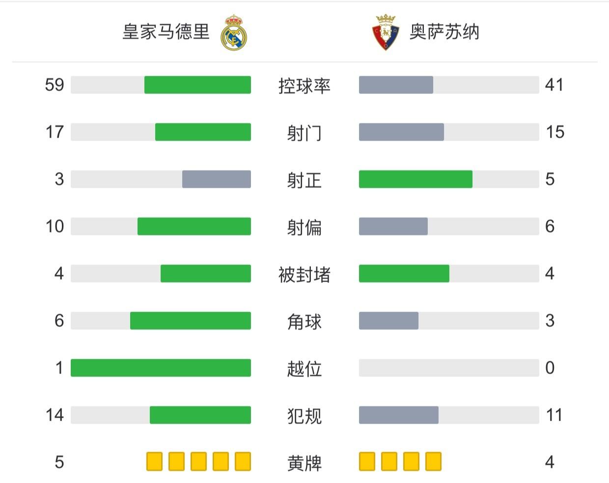 关键事件: 第2分钟,维尼修斯左路连过两人后倒三角回敲,罗德里戈包抄推射得手,皇马1-0奥萨苏纳!