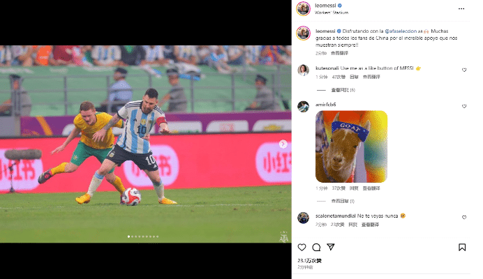 梅西也在赛后感谢了中国的球迷们,在社交媒体上表示:“你们总是给我们令人难以置信的支持”。梅西不会参加阿根廷队的下一场比赛,他将最好的状态留给了中国的球迷们。