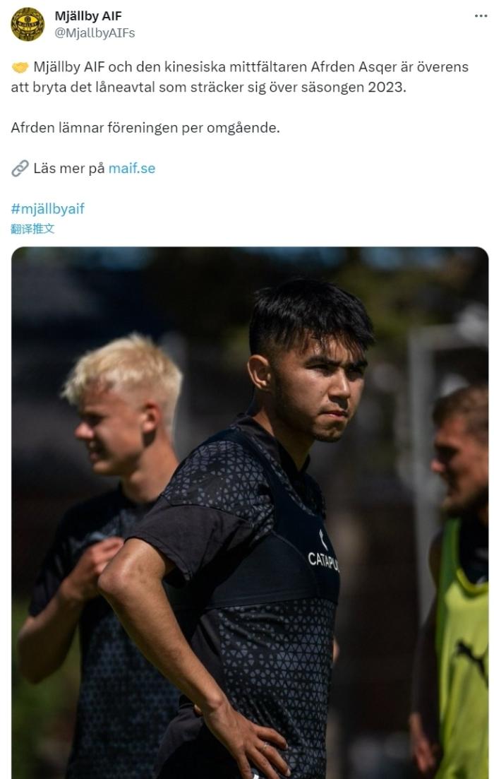 360直播06月09日,瑞超球队米亚尔比俱乐部官方宣布,与19岁的中国球员艾菲尔丁达成协议,提前结束租借合同。根据德转的信息显示,此前艾菲尔丁与米亚尔比的合同,是到今年12月31日。他将结束2个月的留洋,重返老东家中甲广州队。