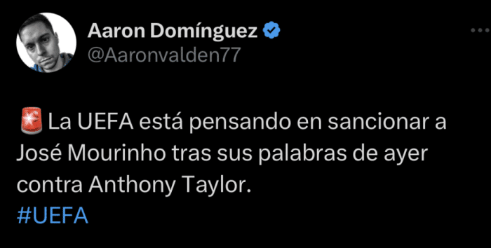 360直播讯06月02日凌晨,来自西班牙记者Aaron Dominguez透露,针对穆里尼奥赛后就安东尼-泰勒发表的言论,欧足联正考虑对穆帅进行处罚。处罚内容包括一定场次的禁赛和相当数量的罚款。