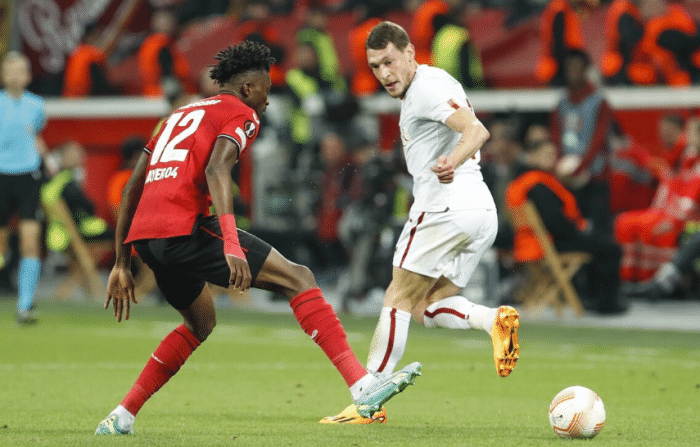因此,穆帅现在没有退路了,只能靠欧联杯来争欧冠名额,欧联杯冠军将参加新赛季的欧冠。欧联杯半决赛,罗马展现了冠军级别的攻守表现,在阵容体系单薄的情况下击垮了勒沃库森。首回合,罗马防守反击相当犀利,控球率不足4成,但是发挥了主场优势和战术优势,与勒沃库森的射门对比为12-10,射正对比为5-2,最终1-0小胜。