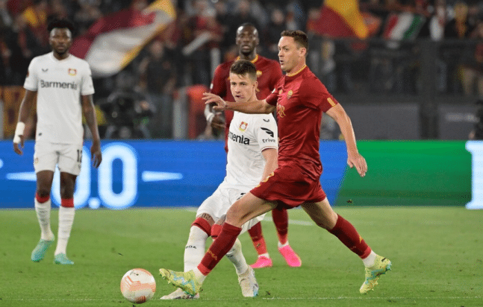 比赛中,罗马处于场面劣势,控球率只有38%,但是攻守两端限制了勒沃库森,与勒沃库森的射门对比为12-10,射正对比为5-2,最终变成1-0小胜。全场唯一进球发生在比赛第62分钟,罗马快攻3人打穿勒沃库森的防线,亚伯拉罕劲射被门将扑出,跟进的20岁中场新人博韦完成补射破门。博韦因此创造了新历史,成为罗马队史欧战半决赛进球最年轻的球员。