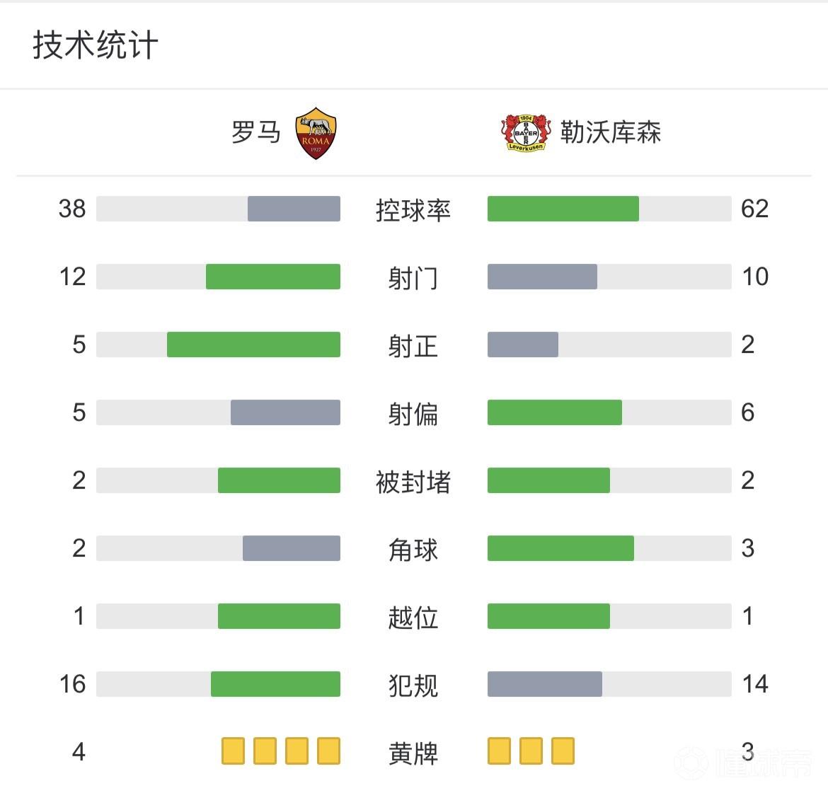 罗马1-0勒沃库森 博维制胜球克里斯坦特献关键封堵