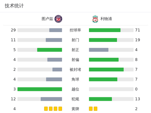 关键事件: 第36分钟,齐米卡斯后场被阿伦-邓纳姆抢断,后者一路带球推进,禁区内一脚打门,这球宽萨挡了一下有一个变线进入球门,图卢兹1-0利物浦。