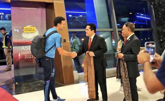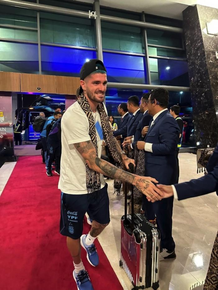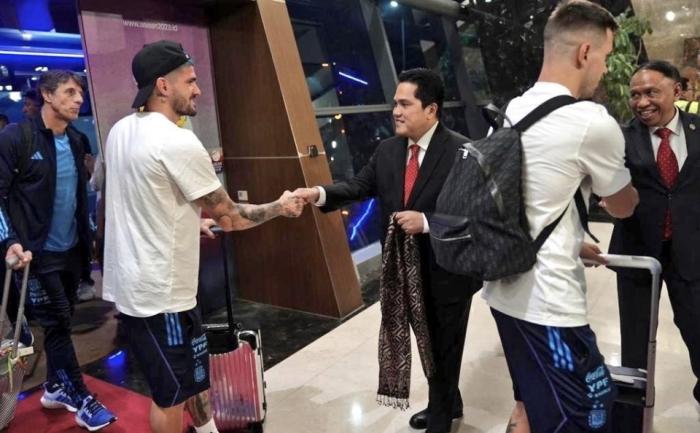 包括主席托希尔在内的印尼足协都在阿根廷下榻的酒店,恭候多时并且列队欢迎阿根廷国脚们的到来。印尼足协领导们与阿根廷国脚一一热情握手,还送上了印尼传统的披肩。而舟车劳顿的阿根廷国脚们,对于印尼方面的高规格接待,也显得有些受宠若惊。