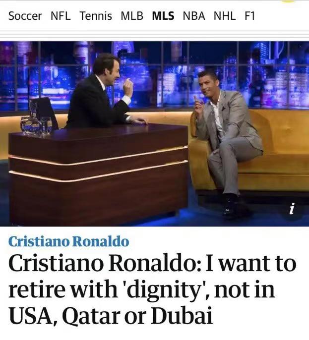 2015年,C罗曾在罗斯秀上说:“我希望成为一名顶级的球员,我想要在一家好的俱乐部,有尊严的退役。我不会去卡塔尔或者美国或者阿联酋迪拜,我不是说去那里踢球不好,只不过我想象不到自己去那里的景象。”