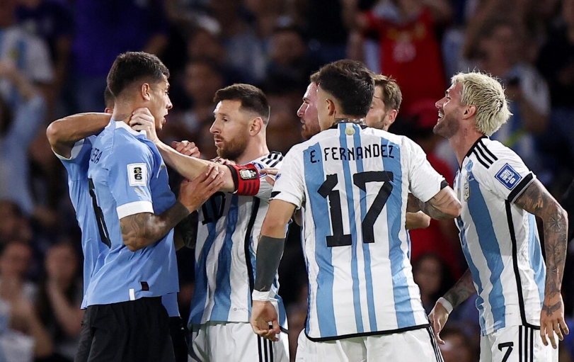 360直播11月17日结束的世预赛南美区一场焦点战中,阿根廷0-2输给乌拉圭遭遇首场失利。而比赛中,双方屡次爆发冲突,阿根廷队长梅西甚至在冲突中对乌拉圭球员做出了锁喉的动作。但这个够得上红牌的动作,却被当值主裁无视。