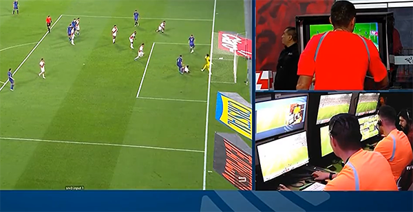 下半场阿根廷队一度被对手压制,梅西在禁区内破门,裁判看了回放之后示意越位在先,但这个球疑似是对手球员碰给门前的梅西,存在一定的争议。