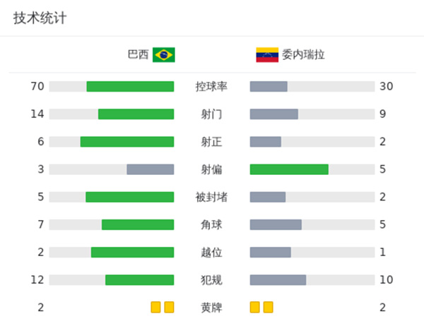 最终全场比赛结束,巴西1-1委内瑞拉。