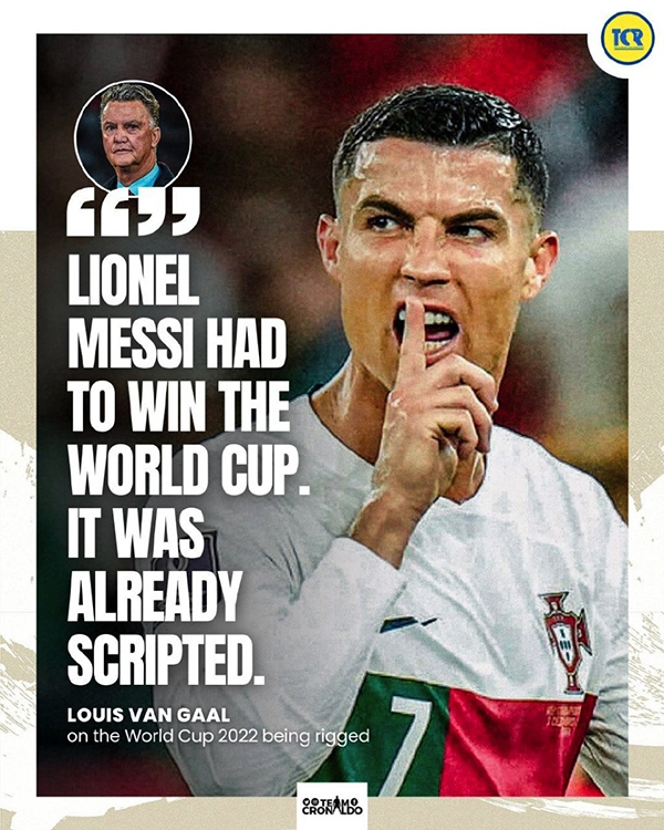 当记者追问范加尔这番话是什么意思,范加尔再次若有所指地说道:“我所说的一切都是认真的!梅西必须要成为世界杯冠军,这都是被安排好的!其他我不想多说了,因为我已经说的够多了!”