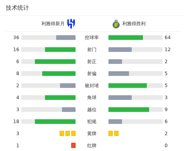 最终利雅得新月主场3-0完胜利雅得胜利。