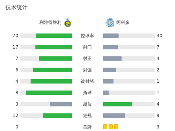 利雅得胜利3-0阿科多 C罗超远吊射&双响距榜首1分