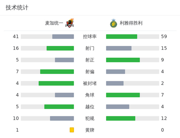 关键事件: 第11分钟,利雅得胜利先下一城!右路定位球机会,特莱斯直接打门球进,麦加统一0-1利雅得胜利。