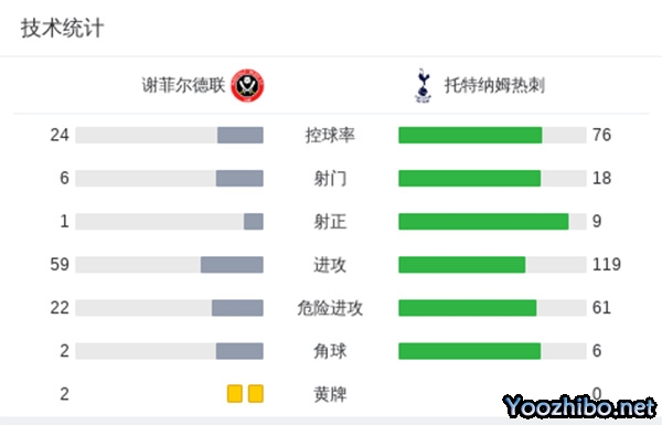 第59分钟,热刺左路倒三角回传形成连续攻势,最终波罗跟进爆射破门,热刺2-0谢菲尔德联。