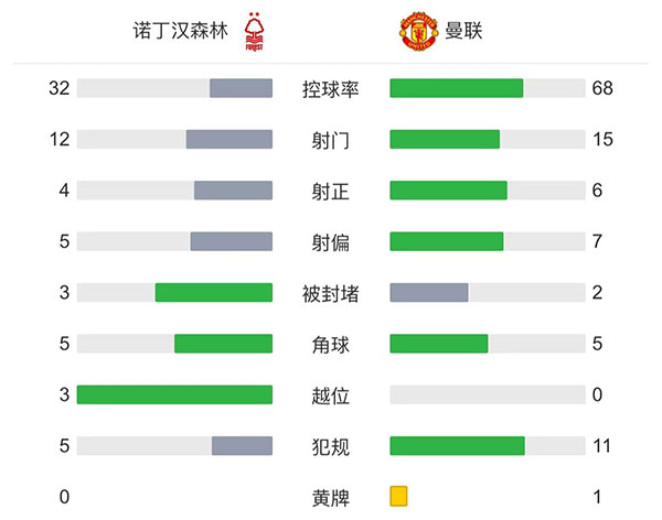 全场比赛结束,最终曼联3-0诺丁汉森林占得先机。