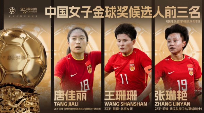 北京时间2023年4月14日,2022中国女足金球奖3大候选人诞生,锁定为张琳艳、唐佳丽、王珊珊,曾4夺中国女足金球奖的王霜落选。唐佳丽曾夺取过一次中国女足金球奖,王珊珊和张琳艳均没有拿过中国女足金球奖,从三人在2022一整年的表现来看,张琳艳大概率将胜出首次夺取中国女足金球奖,她的竞争力可以说独一档,王珊珊和唐佳丽两人仅仅在亚洲杯表现出色,俱乐部层面的表现似乎达不到中国女足金球奖级别。据了解,中国女足金球奖已经完成投票,参与投票的有国内外100多家媒体,投票统计也已经完毕,主办方将在4月4日下午公布得奖结果,值得期待。