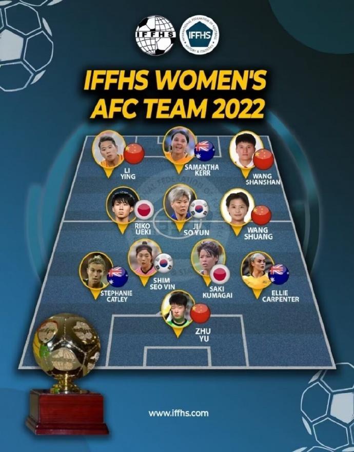 360直播01月26日讯 IFFHS公布了亚足联2022年女足最佳阵容,中国女足共有王霜、朱钰、王珊珊、李影4名球员入选。