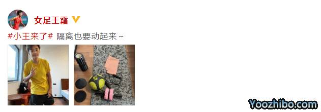 中国女足头号球星王霜提前离队,她已经连续两场比赛缺席,根据最新消息,王霜已经离开了路易斯维尔竞赛俱乐部,现身上海,目前正在上海接受隔离观察,王霜在社交平台官宣了这一消息,并且表示:“隔离也要动起来~”